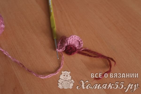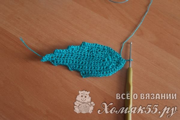 Обвязывая новый ряд, не нужно доходить до верхушки листа, так получатся красивые лепестки.