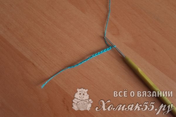 Теперь нужен листочек. Делаем цепочку из воздушных петель.