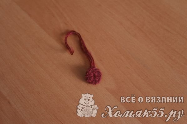 Затем берем другую нить и плотно обвязываем серединку столбиками с одним накидом.