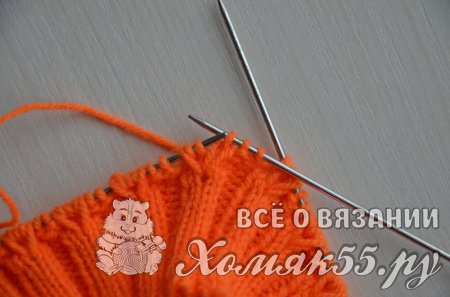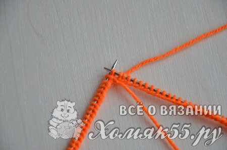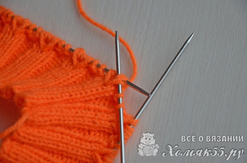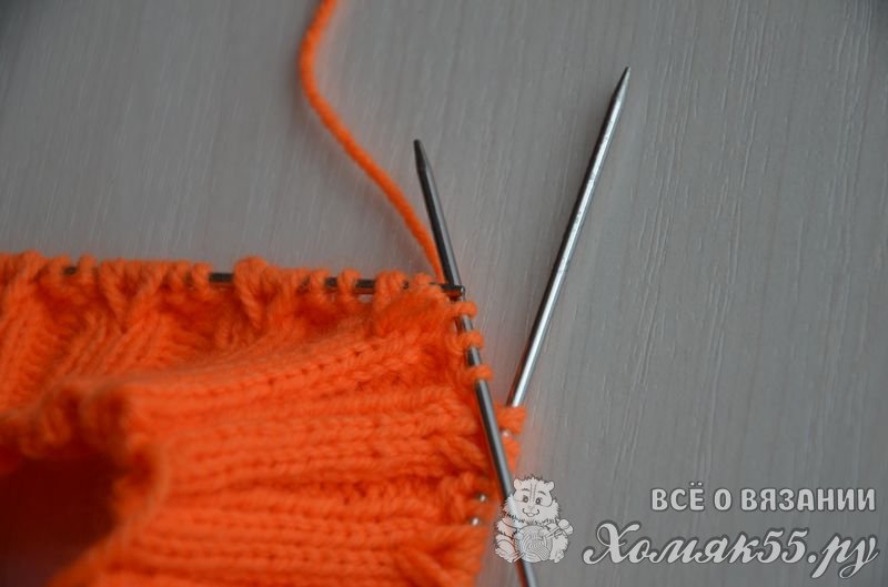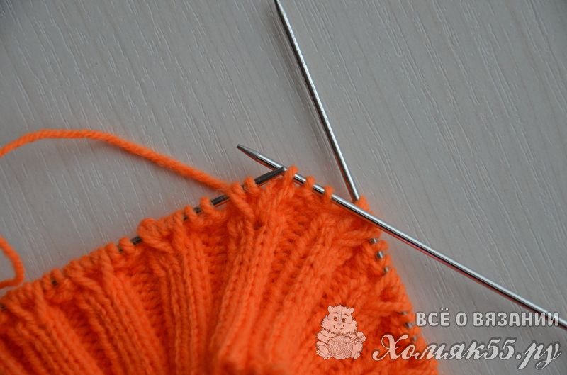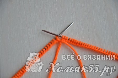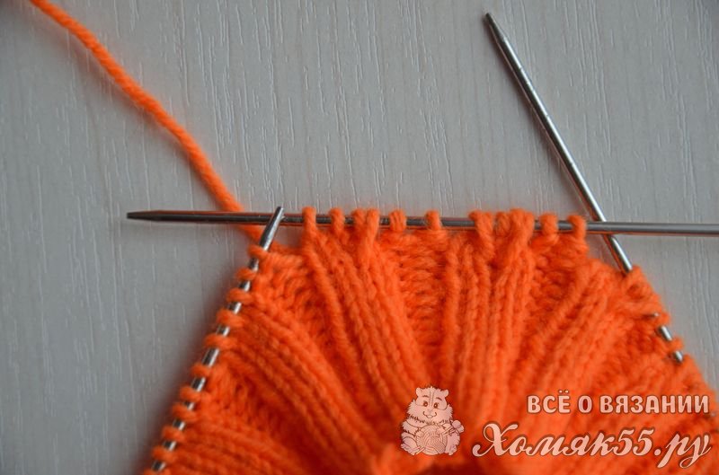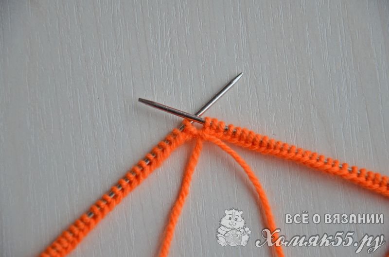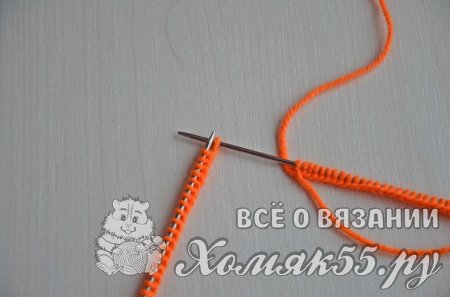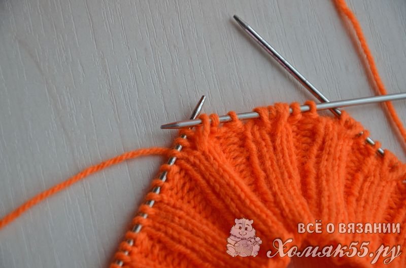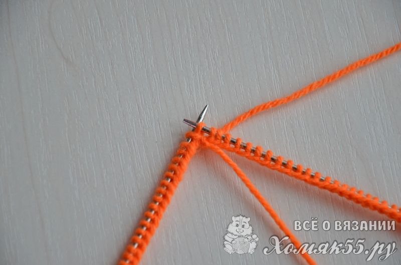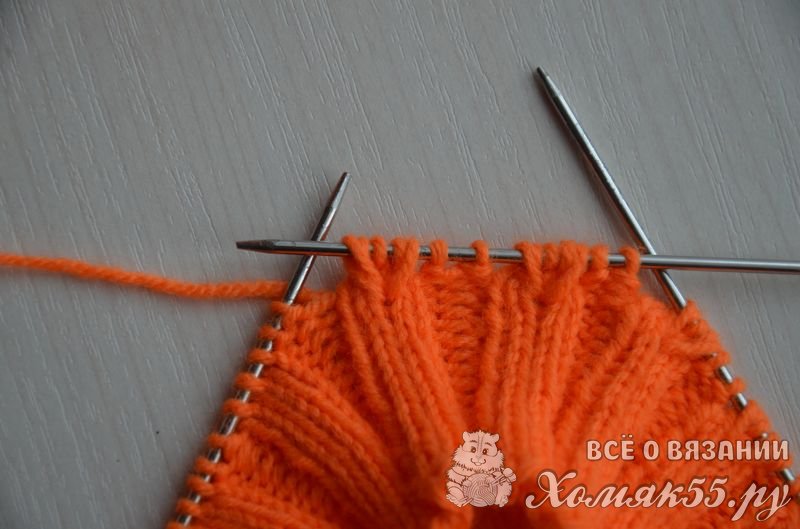 Равномерно распределить петли на четырех спицах, на последней должно быть на одну петлю больше (если используете круговые спицы, то тут все понятно). Правой спицей поддеваем первую набранную петлю и переносим ее на правую спицу.