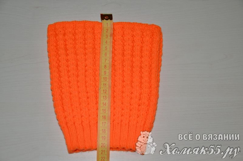 Продолжаем вязать основным узором, пока шапка не будет желаемой глубины. У меня получилось 20 см., хотя можно было сделать поменьше… Закрыть петли.