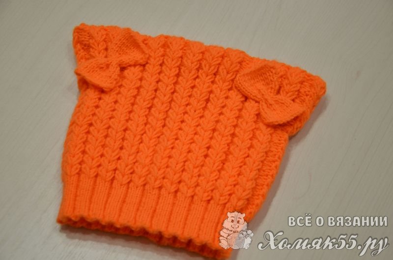 Шапка детская спицами «Рыженькие ушки»