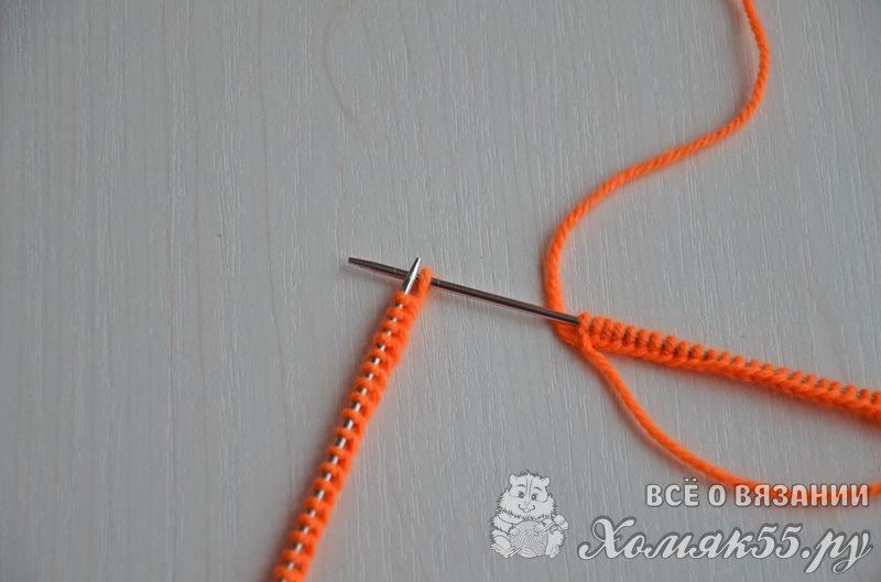 Возвращаем первую петлю на левую спицу. Таким образом, получаем хорошее соединение вязания в круг, которое не будет растягиваться.