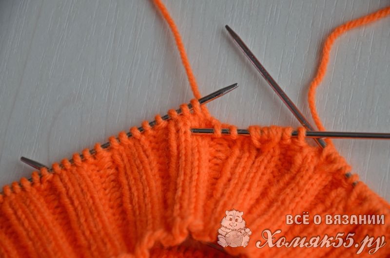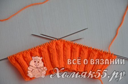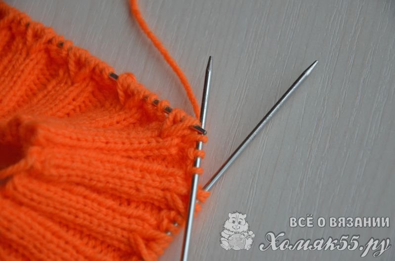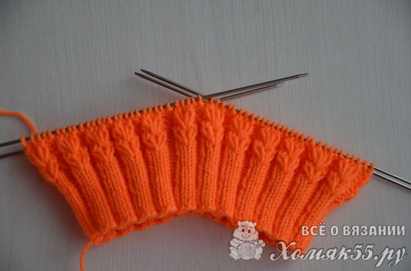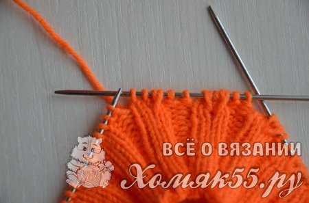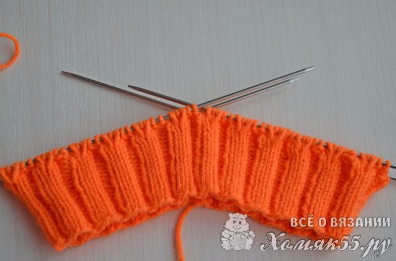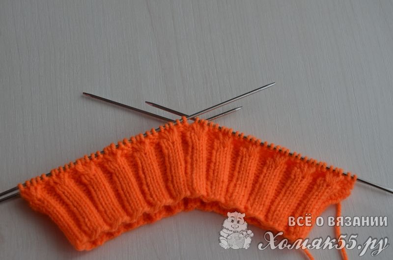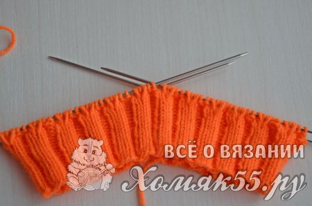 Приступаем к вязанию резинки: * 2 И, 3 Л *, повторять до конца ряда. Вяжем резинку высотой 4 см. (примерно 16 рядов).