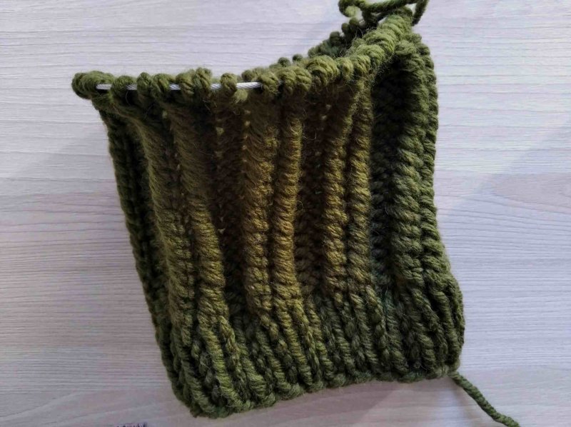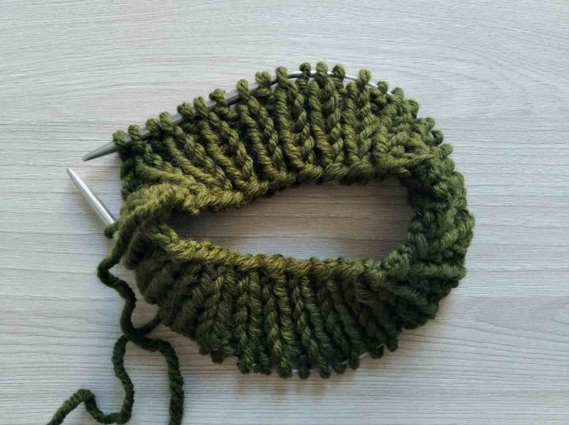 Раппорт основного узора шапки 6 петель. Набираем по обхвату головы петельки и вяжем обычную резинку нужной высоты 1 на 1.