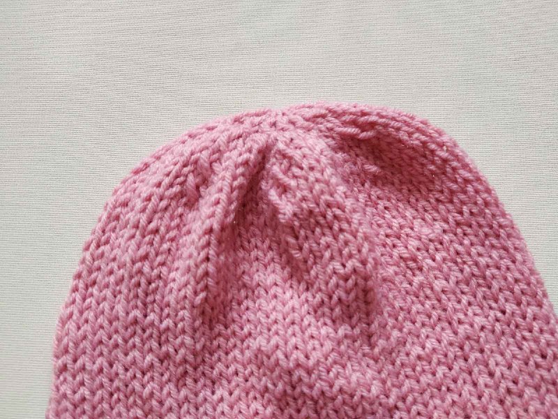 Далее вяжите до нужно высоты шапки лицевой гладью, провязывая только лицевые петли. Вяжите до необходимой глубина шапочки, так как на убавки уйдет мало рядов.