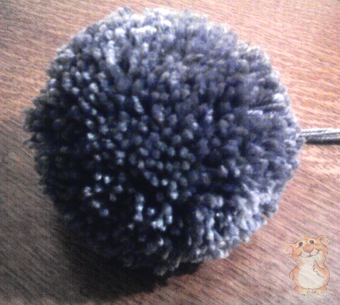 После чего начинайте обматывать их нитью темно-серого цвета примерно в 5-6 рядов. Чем больше рядов, тем плотнее будет помпон.