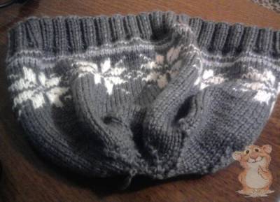 Набираем на спицы 110 петель нитью темно-серого цвета.