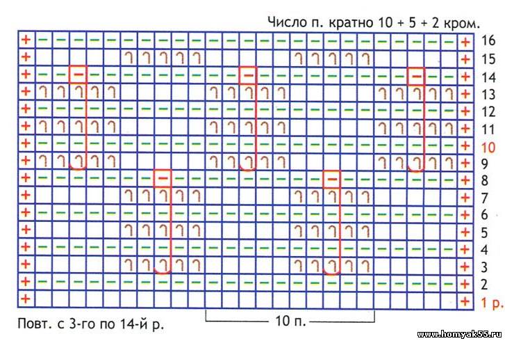 Узоры Спицы: резинка 1 х 1, фантазийный узор по схеме