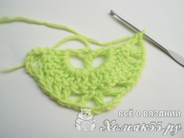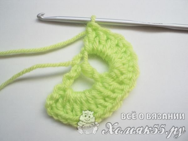 Вяжем ССН в ССН. А в следующую арочку выполним восемь ССН.