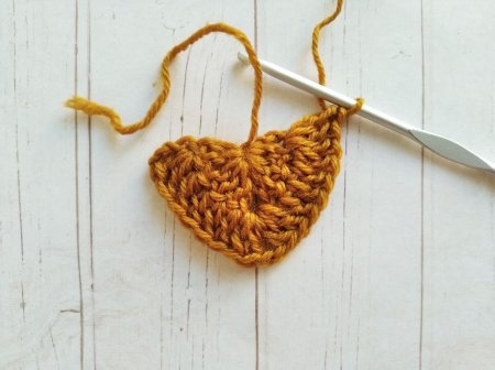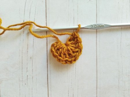 Формируем скользящую петлю. Набираем 4 В/П и вяжем еще 4 С/С/Н. Делаем 2 В/П и вяжем 3 С/С/Н и 1 С/С/2Н.