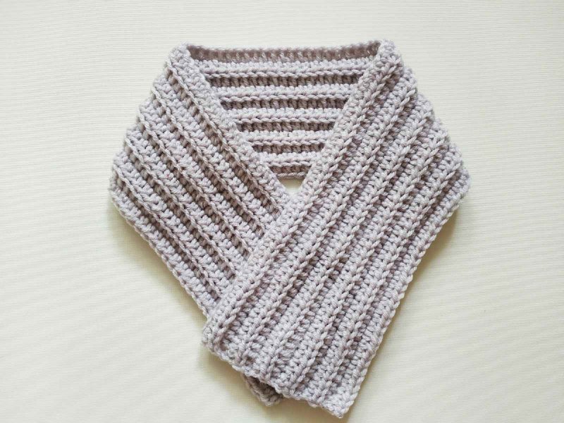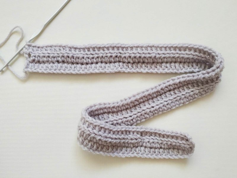 Для начала наберем цепочку из воздушных петель. Количество зависит от необходимой длины шарфика. Затем делаем 2 дополнительные петли, которые будем считать пссн. А затем провязываем ряд, выполняя по 1 пссн в каждую из петель цепочки. Затем разворачиваемся и вяжем в обратную сторону, при этом тоже в начале выполнив 2 петли вместо 1 пссн. Вяжем пссн не за полную петлю, а только за заднюю стенку.