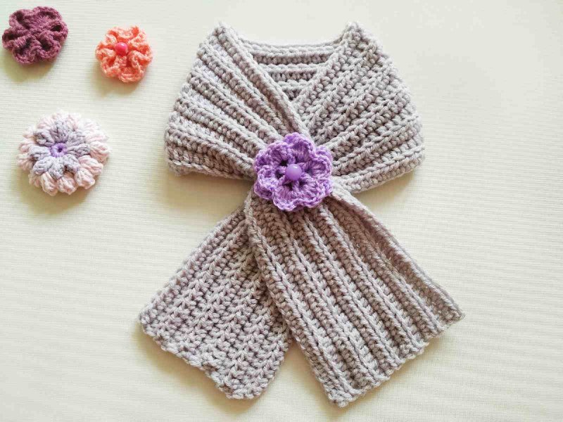 Просовываем 2 кончика шарфика в получившуюся петельку. Вот такой нежный шарфик для девочки получился.