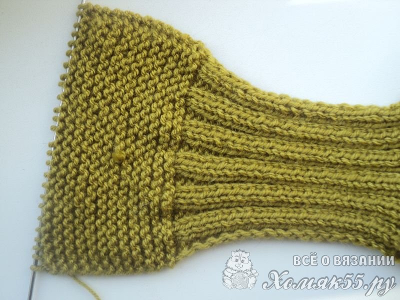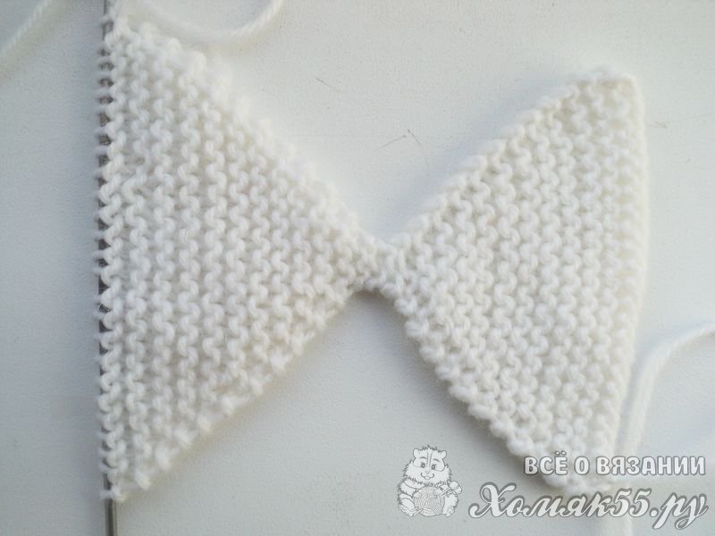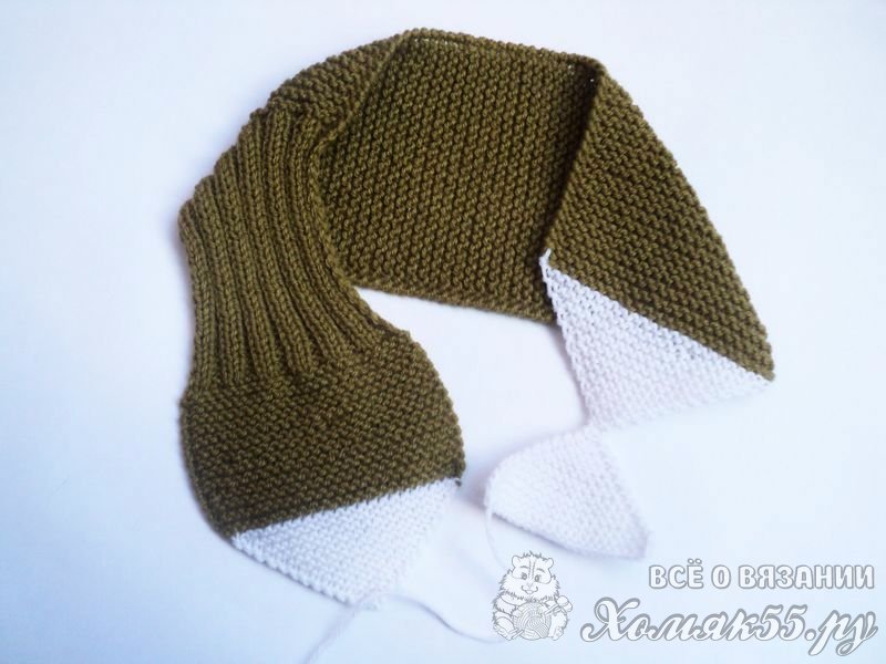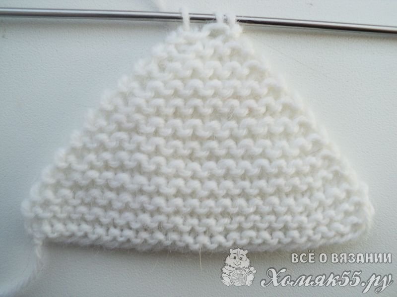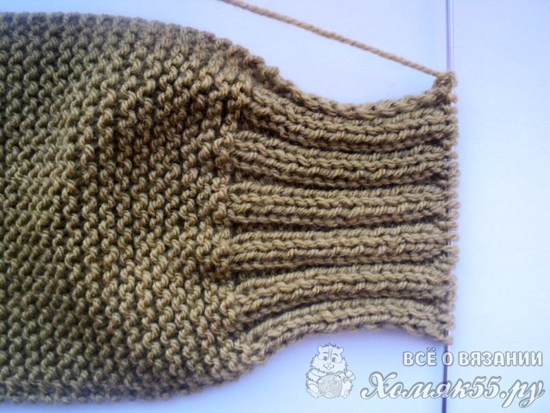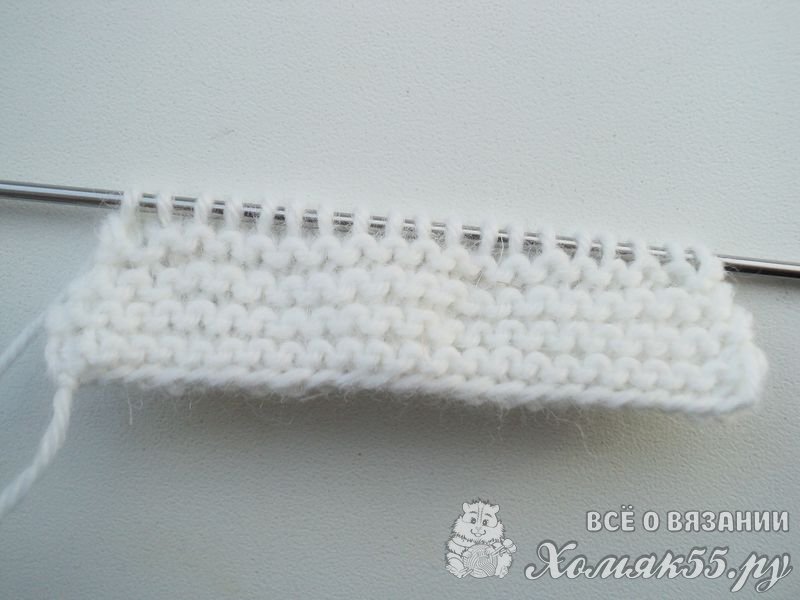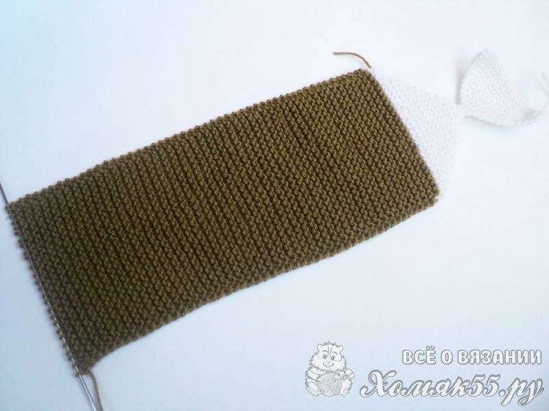 И снова продолжаем вязать платочной вязкой. Вяжем ею еще пять-семь сантиметров.