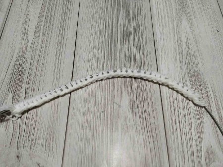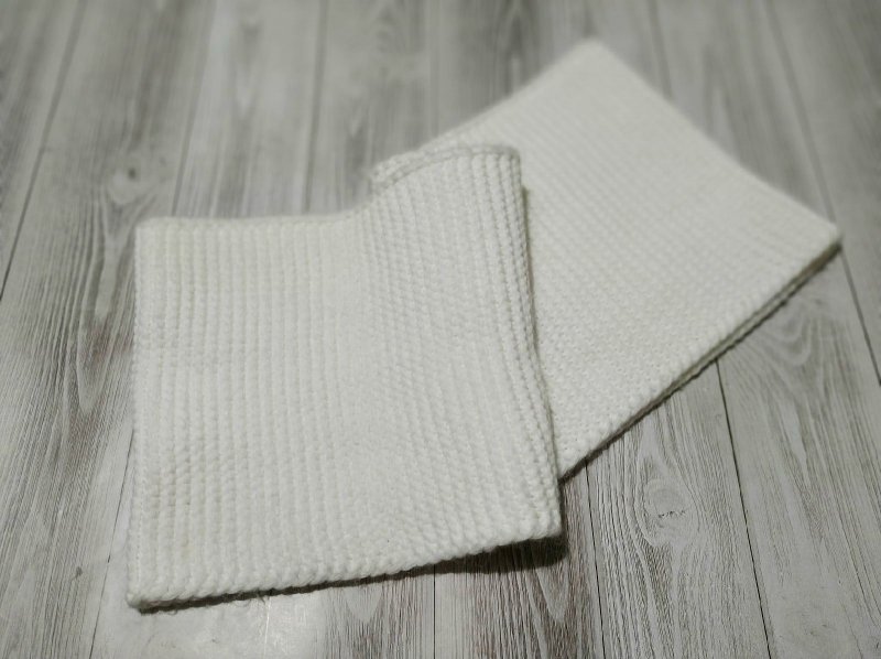 Всего в длину необходимо связать 130 сантиметров. Этой длины хватит на 2 оборота. Но если вы хотите сделать снуд попросторнее, то тогда лучше провязать не 130, а 150-160 сантиметров.