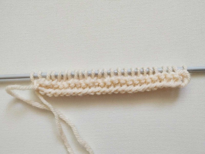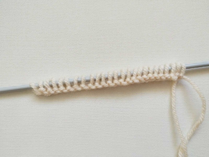Все петли провязываем лицевыми в первом ряду. В следующем тоже все петельки вяжем лицевыми.