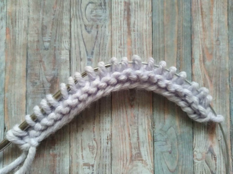 Вяжем 2 ряда лицевыми петлями. Это подготовительные рядочки, а приступаем к основному узору.