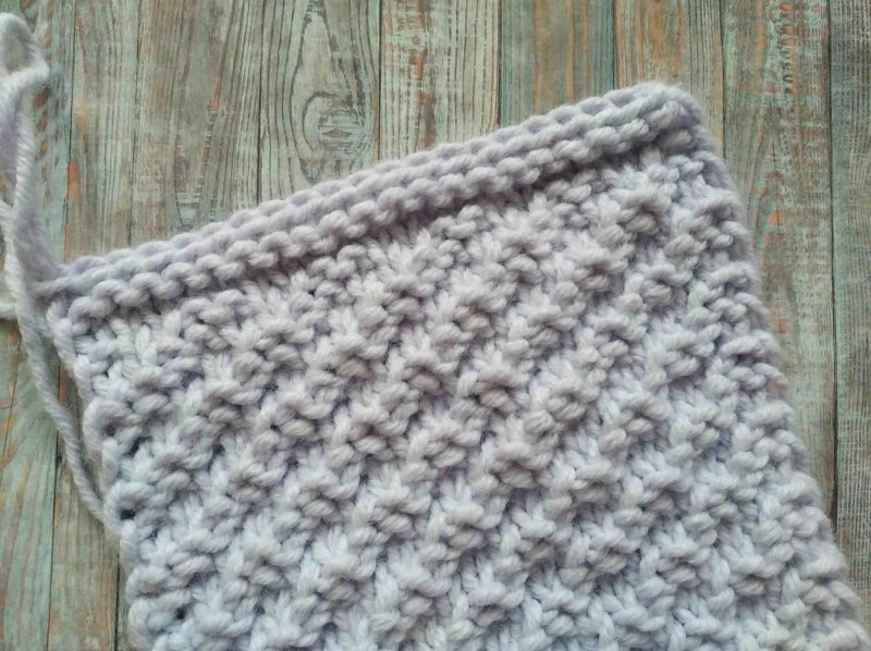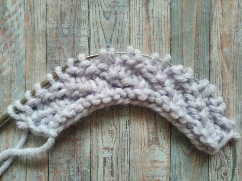 Вот так будет выглядеть узор шарфа после нескольких провязанных раппортов.