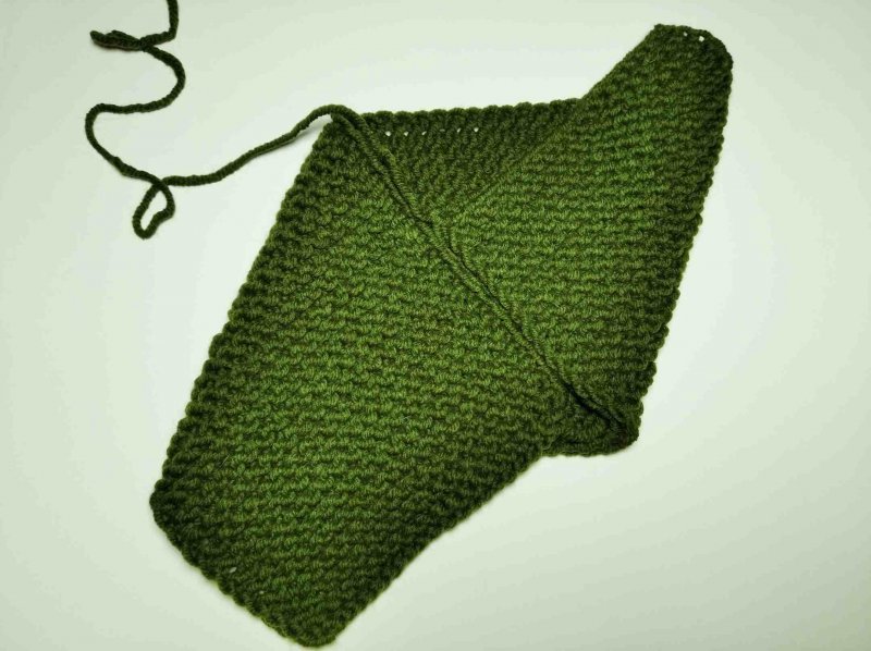 Сшив, закрепите узелком и спрячьте хвостик нити внутри вязания.
