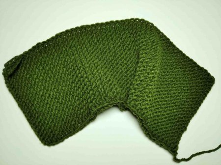 Вяжется манишка одним полотном разворотными рядами. Все, что нужно уметь – это вязать лицевые петли и выполнять обычный шов.