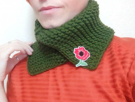 Манишку можно носить так, но можно ее украсить и закрепить, чтобы она не разворачивалась. Просто пристегните этот уголочек красивой брошкой. Или пришейте большую деревянную пуговицу.