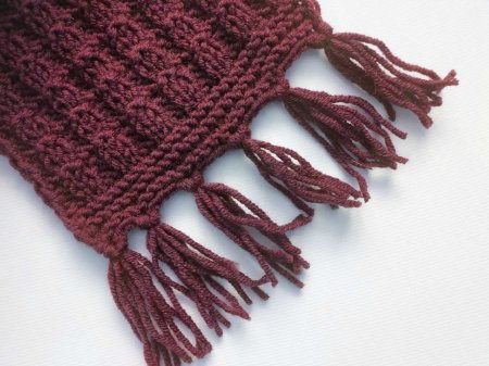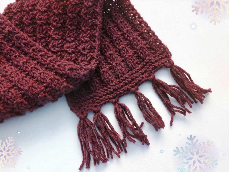 Такой шарфик будет хорошо смотреться из любой пряжи. Узор состоит только из изнаночных и лицевых петель, поэтому шарфик сможет связать даже новичок в вязании.