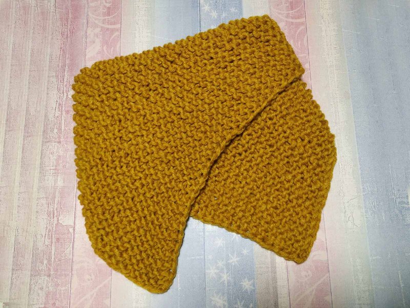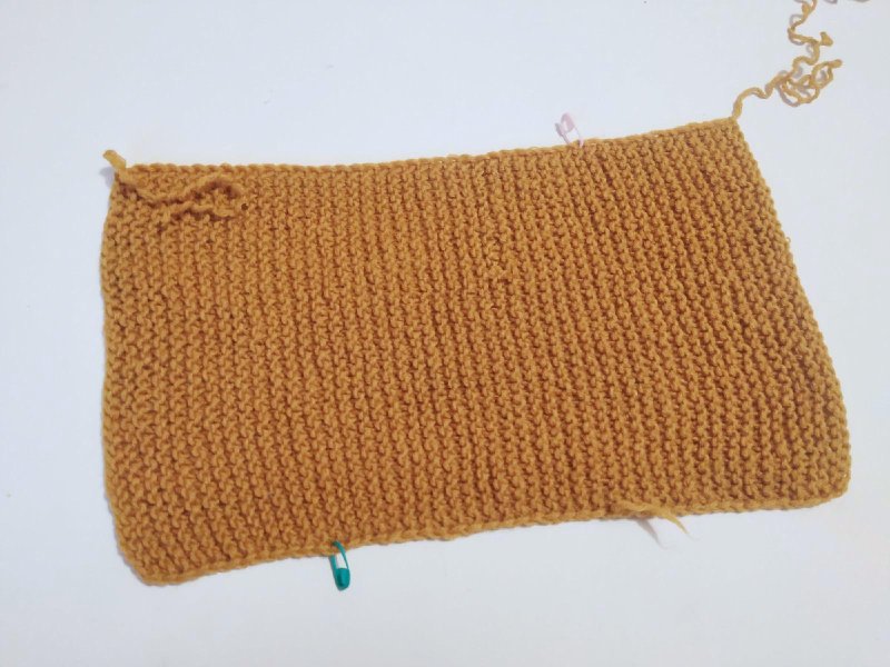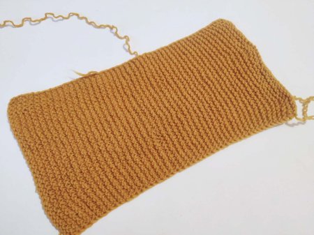 Вяжем полотно длиной 48-50 см. Закрываем петли.