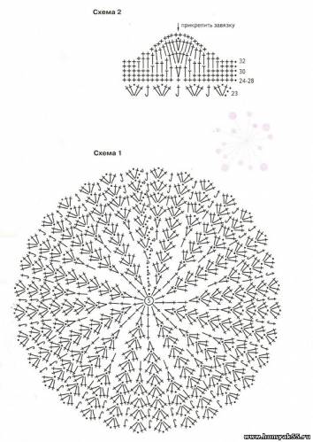 Свяжите тёмно-коричневой пряжей крючком № 2 по схеме 3 и пришейте его к готовой шапке мононитью.