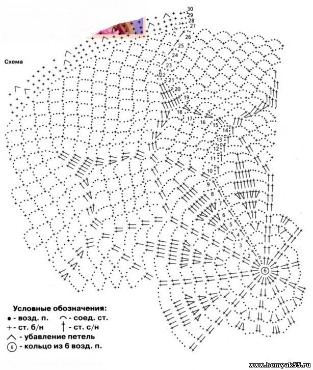 Наберите цепочку из 6 ВП, замкните в кольцо.1-й ряд: 3 ВП подъёма, 19 ССН.