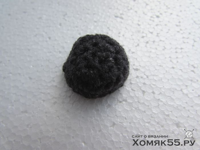 Откладываем «иголки» в сторону и начинаем вязать детали. Чтобы сделать носик, вяжем 5 воздушных петель, замыкаем их в кольцо и вяжем 2 ряда столбиков без накида с прибавления в каждой петле. В третьем ряду делаем 2 убавления и вяжем столбики без накида. В четвертом и последующих рядах делаем по 3 прибавления, чтобы вязание приобрело форму конуса.
