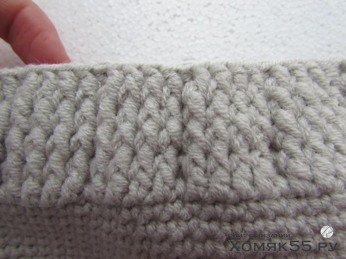 Теперь нужно будет провязать резинку, чтобы шапка надежно фиксировалась на голове малыша и даже при активном движении не вертелась из стороны в сторону. Для этого вяжем 3 воздушных петли для подъема, а затем вяжем 1 ряд столбиков с накидом.