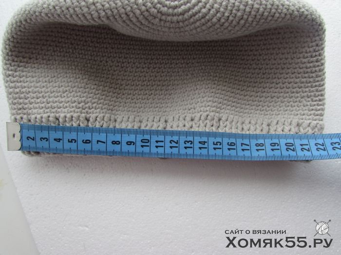 Теперь складываем шапку пополам и измеряем ее длину сантиметром.
