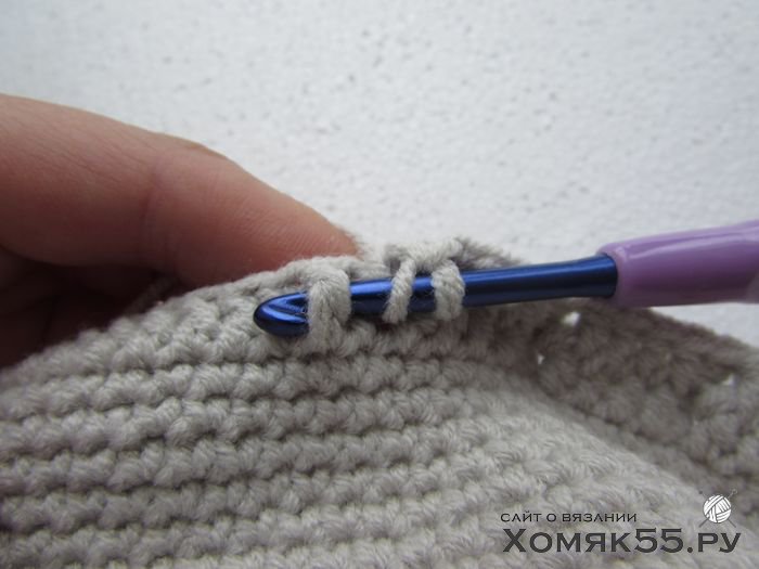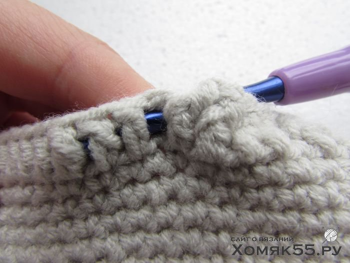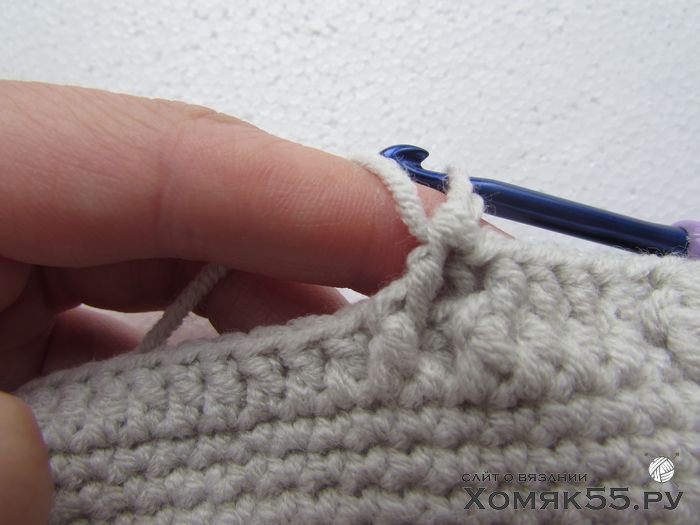 Делаем 1 воздушную петлю для подъема, поворачиваем вязание, а затем вяжем столбики без накида до конца ряда. И так до тех пор, пока ушко не будет нужного размера.