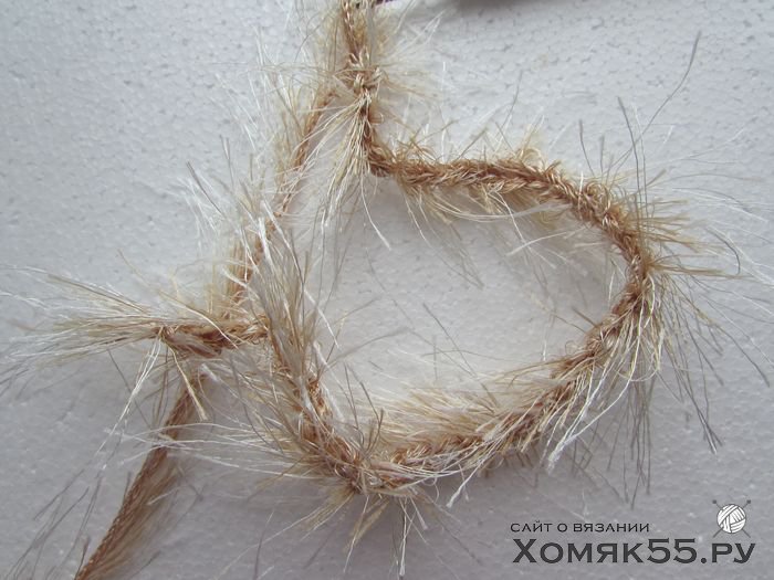 Из пряжи «Травка» вяжем цепочку из воздушных петель, длина которой равна длине сложенной пополам шапки.