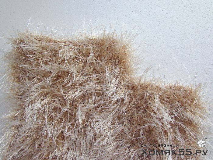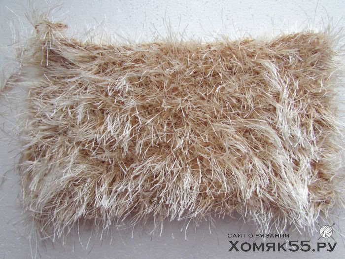 Чтобы сделать лицевой рельефный столбик с накидом, делаем накид, а затем вводим крючок под столбик с накидом предыдущего ряда так, как это показано на фотографии:
