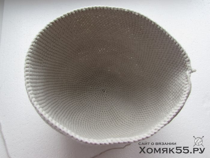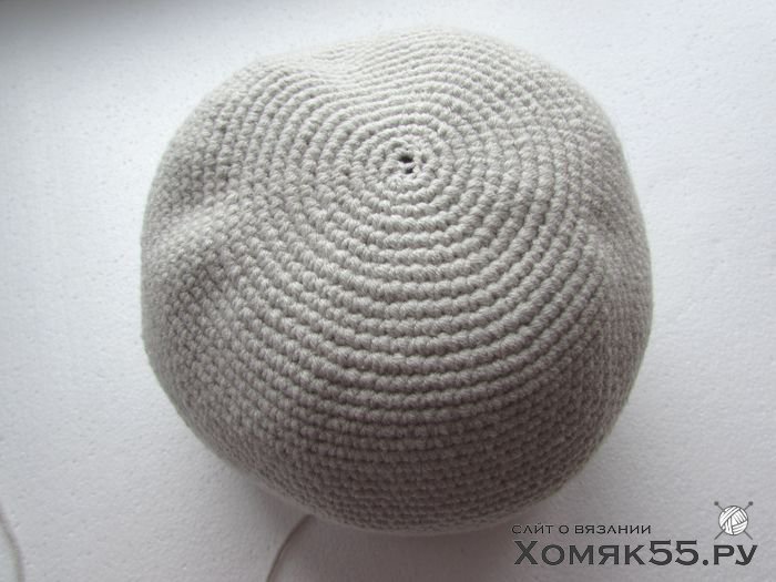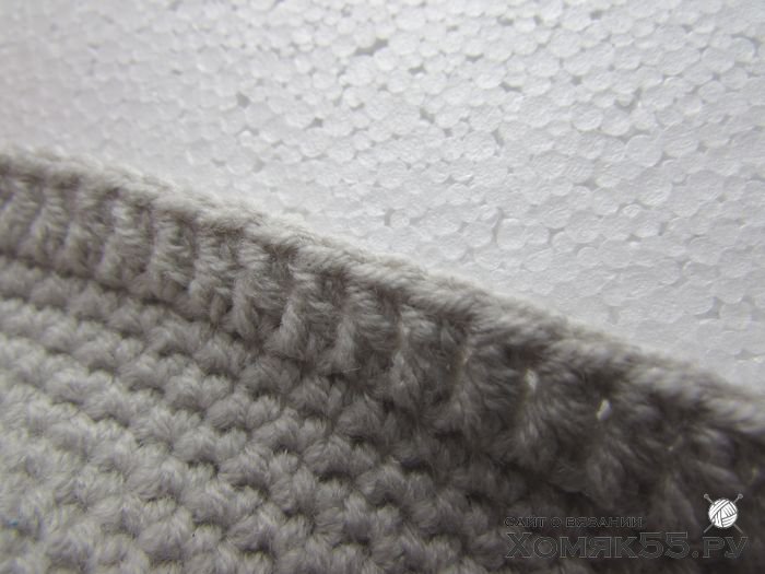 Замыкаем полученную цепочку в кольцо, а затем начинаем вязать по кругу столбики без накида, в первом ряду делая прибавления в каждой петле, во втором – через петлю, в третьем – через каждые три петли.