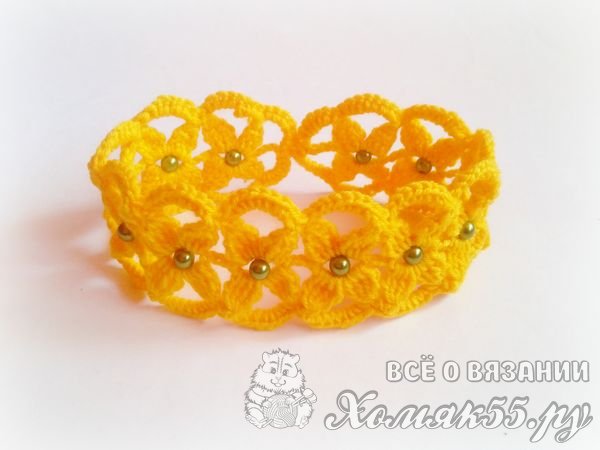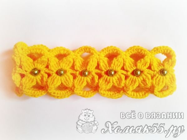 Повязка будет состоять из маленьких желтых бабочек, украшенных бусинками. Она не будет толстой и широкой. Поэтому такую повязку можно носить летом даже в самую жаркую погоду. Для повязки лучше брать нетолстую пряжу. Тогда бабочки будут смотреться намного аккуратнее. Например можно использовать для вязания такой повязки детскую пряжу. Она нетолстая и достаточно мягкая и приятная на ощупь.