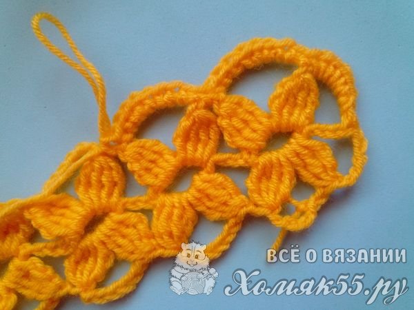 И теперь мы просто обвяжем все наши получившиеся арочки обычными СбН. В каждой из них мы будем выполнять по семь СбН.