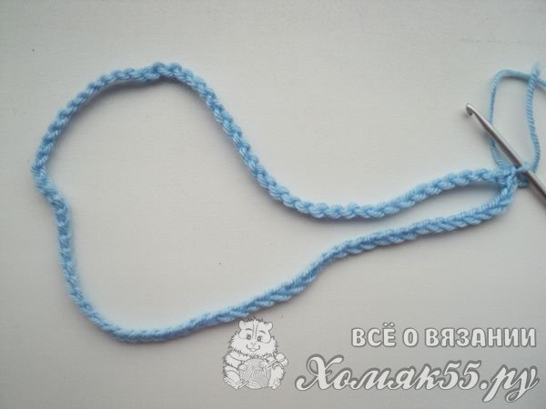 Цепочку замыкаем в кольцо соединительной петлей. Проверяем, что наша цепочка не перекрутилась где-нибудь. В противном случае, провязав ряд мы это все равно обнаружим и нам придется распускать вязание до самого конца, чтобы правильно соединить 2 конца воздушной цепочки.