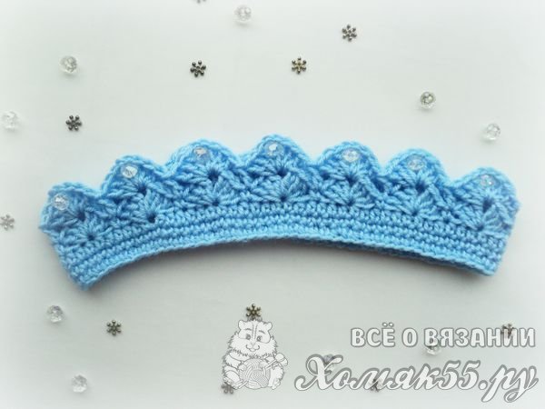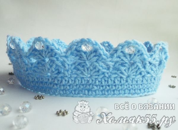 Прикрепим для красоты бусинки по всей окружности короны. Вот такая красивая корона крючком получается!