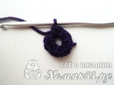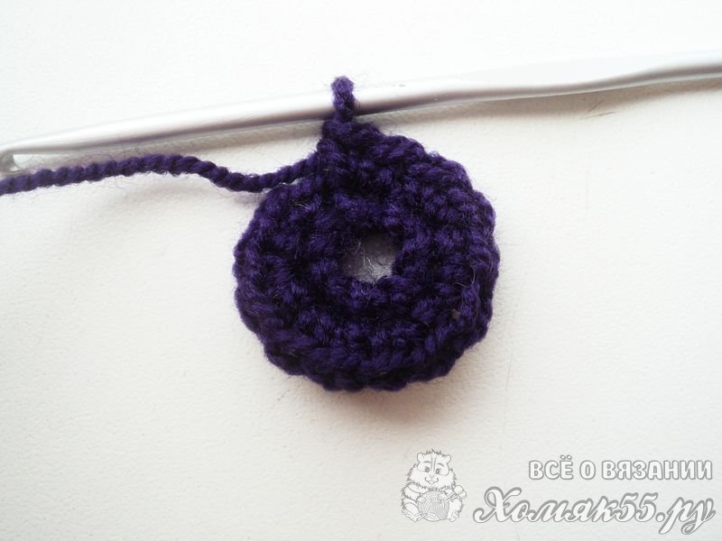 Далее вяжем в каждый СБН по два новых СБН. Итого у нас получится четырнадцать петелек по кругу.