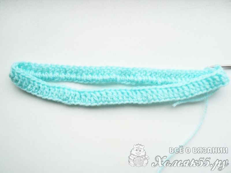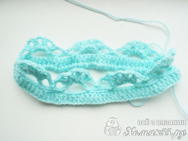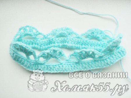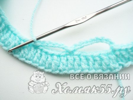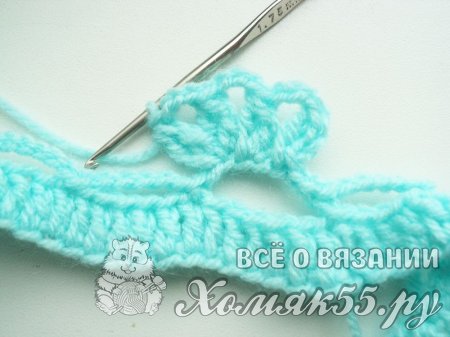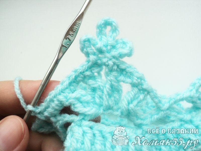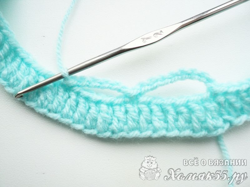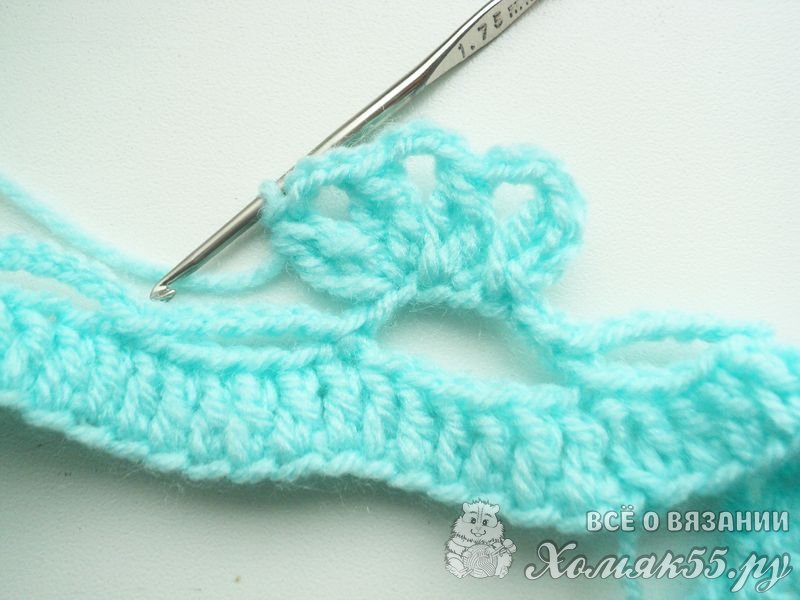 Вяжем до следующего элемента и повторяем действия. Так нужно обвязать до конца.