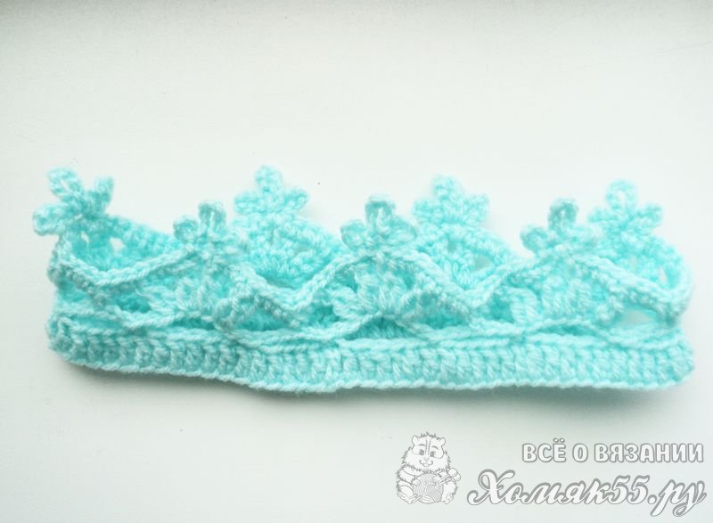 Петлю закрепляем и затягиваем. Нить обрезаем. Корона крючком готова, нам осталось только накрахмалить ее, чтобы она держала форму. Такой аксессуар завершит образ нарядной принцессы!