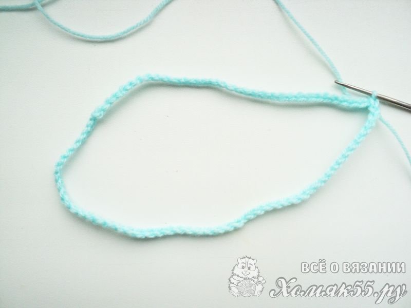 Набираем цепочку из воздушных петель. Их количество зависит от обхвата головы. Но важно подогнать количество начальных петель до числа кратного 12. Так как рапорт узора составляет 12 петель.