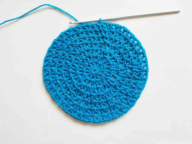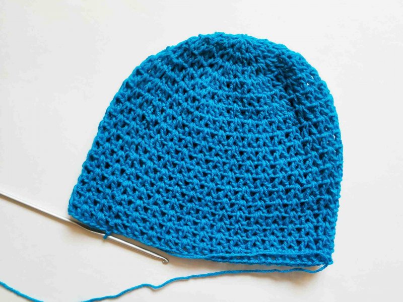 Как только диаметр шапки будет вывязан, вяжем нужное количество рядов до желаемой глубины, выполняя по 1 галочке в каждую галочку предыдущего ряда.