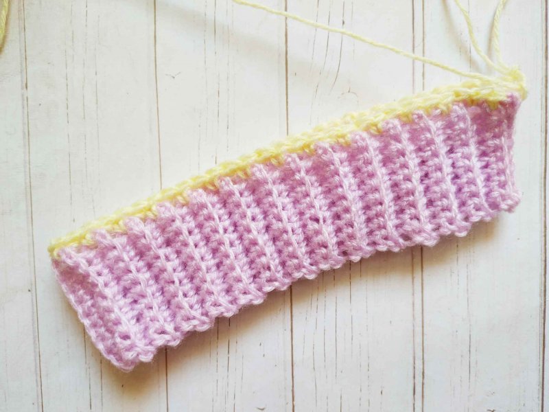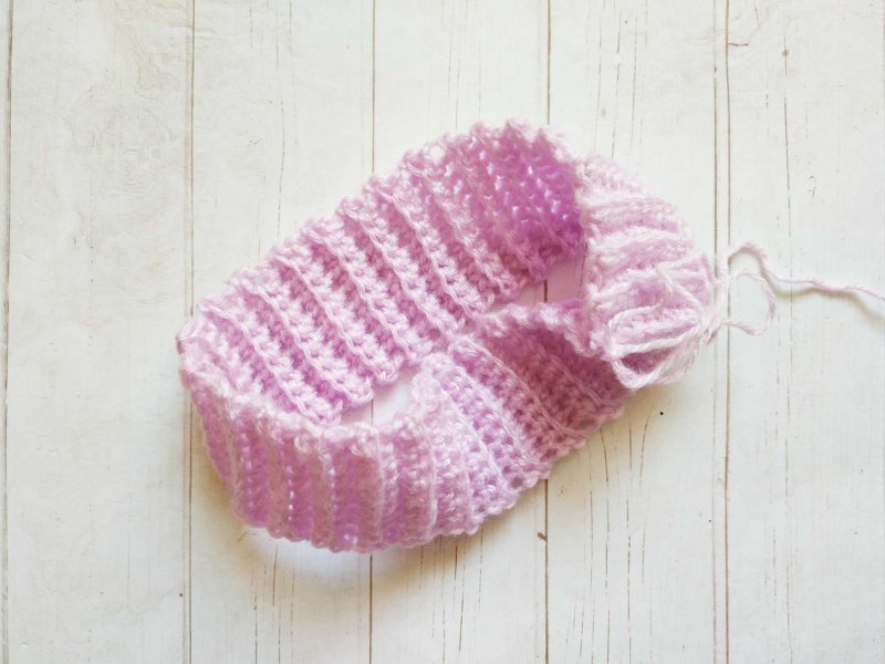 Начинаем с вязания резинки. Набираем необходимое количество петель для желаемой ширины резинки. И вяжем несколько рядов столбиками без накида за заднюю стенку.