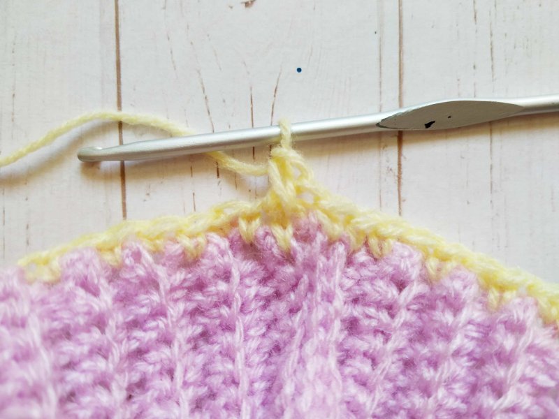В конце выполняем соединительный столбик. Далее снова вяжем так же, как и вязали до этого.