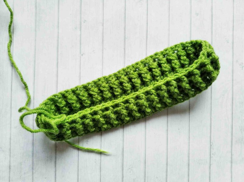 Начнем с резинки. Наберем цепочку из петелек. Их число должно делиться на 4. Длины цепочки должно хватать на объем головы. Замыкаем в кольцо и вяжем по кругу 1 ряд столбиками с накидом.