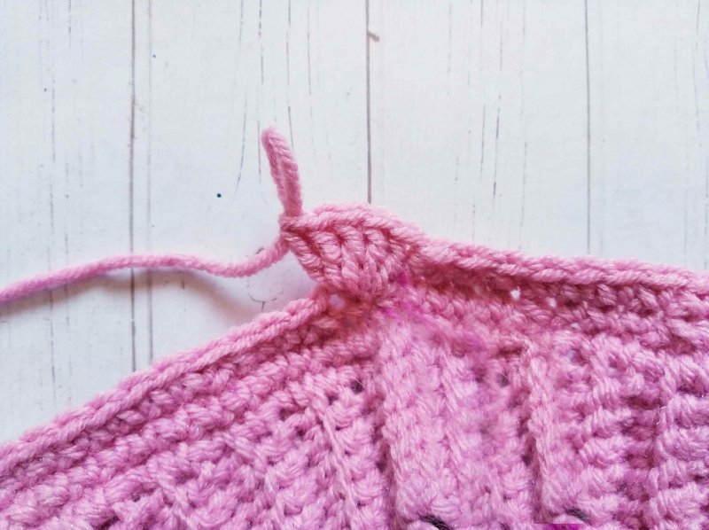 Сшиваем края С/С. И дальше вязать мы уже продолжим по кругу.