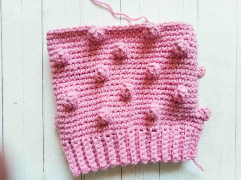 Затем снова 3 ряда С/Б/Н. И повторяем первый ряд с шишечками. И так далее. Вяжем, пока шапка не станет необходимой высоты.